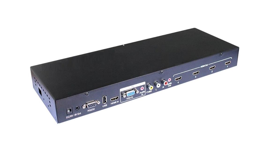 Поддерживаемые форматы видео: DTV / HDTV 1080P / 1080i / 720P / 576P / 480P / 576i /480i, Поддерживаемые форматы аудио: LPCM, Входные порты: 1xHDMI, 1xUSB, 1xVGA, 1xAV, Выходные порты: 4xHDMI, Режим сплиттер 1x4 HDMI, Режим видео Стены: 10x10, 2x2, 3x3, 4x4, Форматы, поддерживаемые USB-плеер: изображения JPG, PNG, BMP, audioMP3, FLAC, видео AVI.WMV, MPG, MP4, RMVB, текстовые файлы TXT, Управление ИК пульт, RS232.
